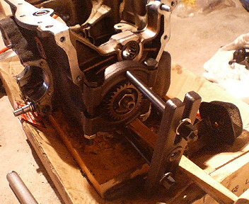一度外したドライブギアを取り付けプーラーをセット。
