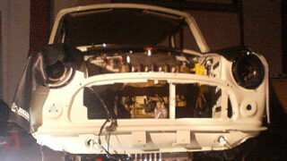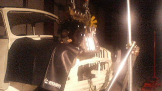久しぶりに廃墟の外へ出してみました。軽いテスト走行が可能な広い駐車場があるのでATの変速具合も確認できます。かる~く数周走ってから、ボンネット開けたまま慣らしのつもりでアイドリングさせてたらガッシャ~~ン!!何々!!ボンネットが強風にあおら...