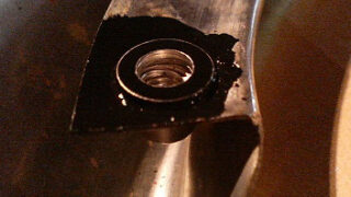 以前バンパー外すときにポッキリとやってしまったので修理しました。バンパーボルトはスタッドボルトなので簡単には外せないかと思ってたんですが四隅をカシメてあるだけで、それをリュータで削り落としたら外れました。外した後には四角い穴が残るのですが、...